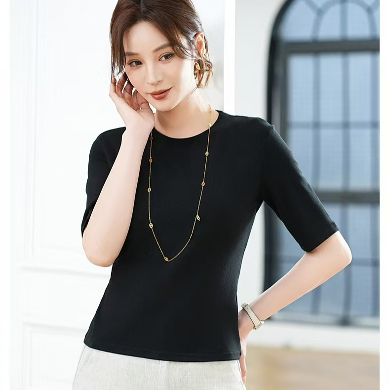 【百搭顯瘦】女圓領純色中袖T卹